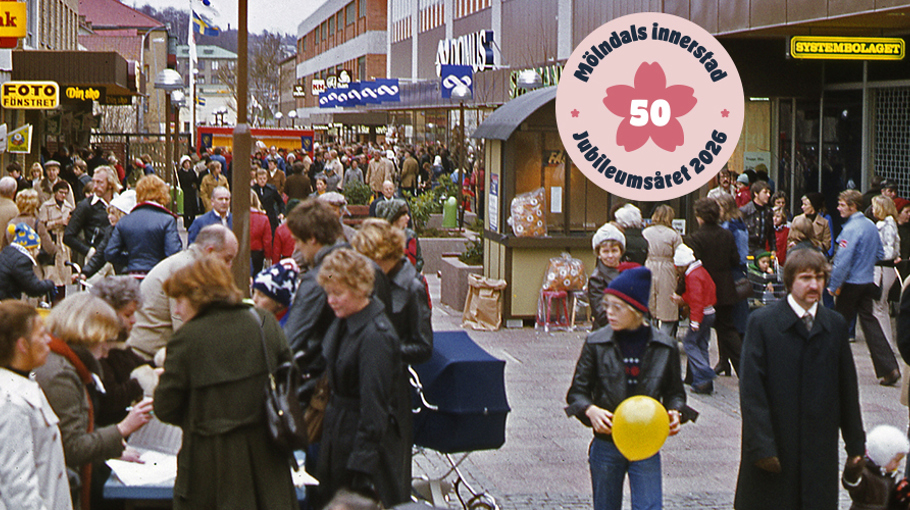 En utställning om Mölndals innerstad – dåtid och nutid möter framtid. Producerad av Mölndals stadsmuseum och visas utomhus i centrala Mölndal.