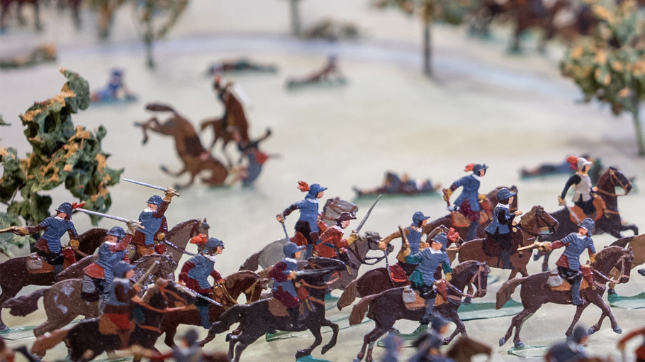 Konstnären Ove Rützou (1881–1968) fascinerades av händelsen och skapade flera tusen handmålade tennfigurer. När tennfigurerna skänktes till Kulturen 1967 fick museet en unik möjlighet att visa krigets kraft och konsekvenser i miniatyr. Resultatet är ett detaljerat diorama som fångar kaoset och den mänskliga utsattheten i striden. Trots det stora antalet figurer visar dioramat bara omkring en tiondel av de människor som deltog i slaget.