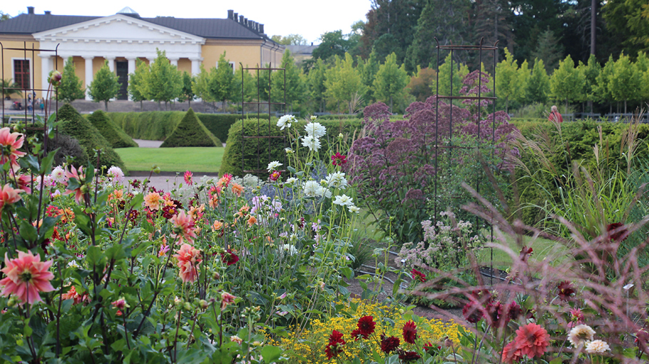 Dahliakvarteret i Botaniska trädgårdens barockträdgård.